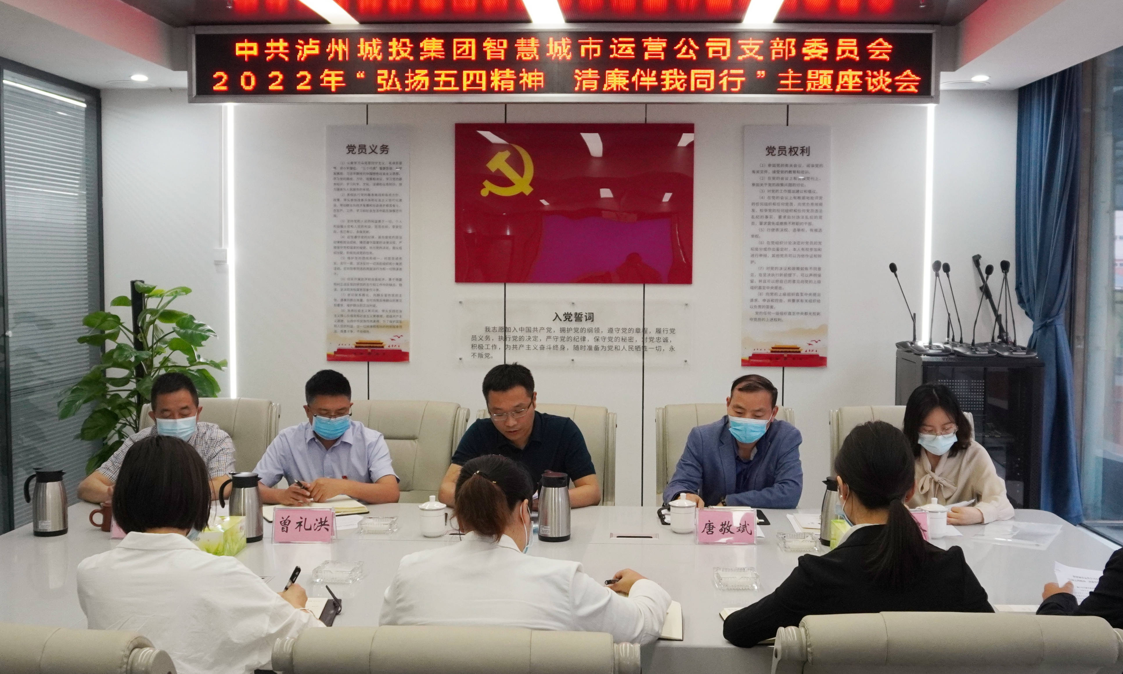 4月28日,智慧城市運(yùn)營(yíng)公司黨支部召開2022年“弘揚(yáng)五四精神 清廉伴我同行”主題座談會(huì)。會(huì)上集中觀看了《莫以貪腐賭未來(lái)》系列廉潔警示教育片,與會(huì)人員書寫個(gè)人廉潔寄語(yǔ),結(jié)合工作崗位交流心得體會(huì)。