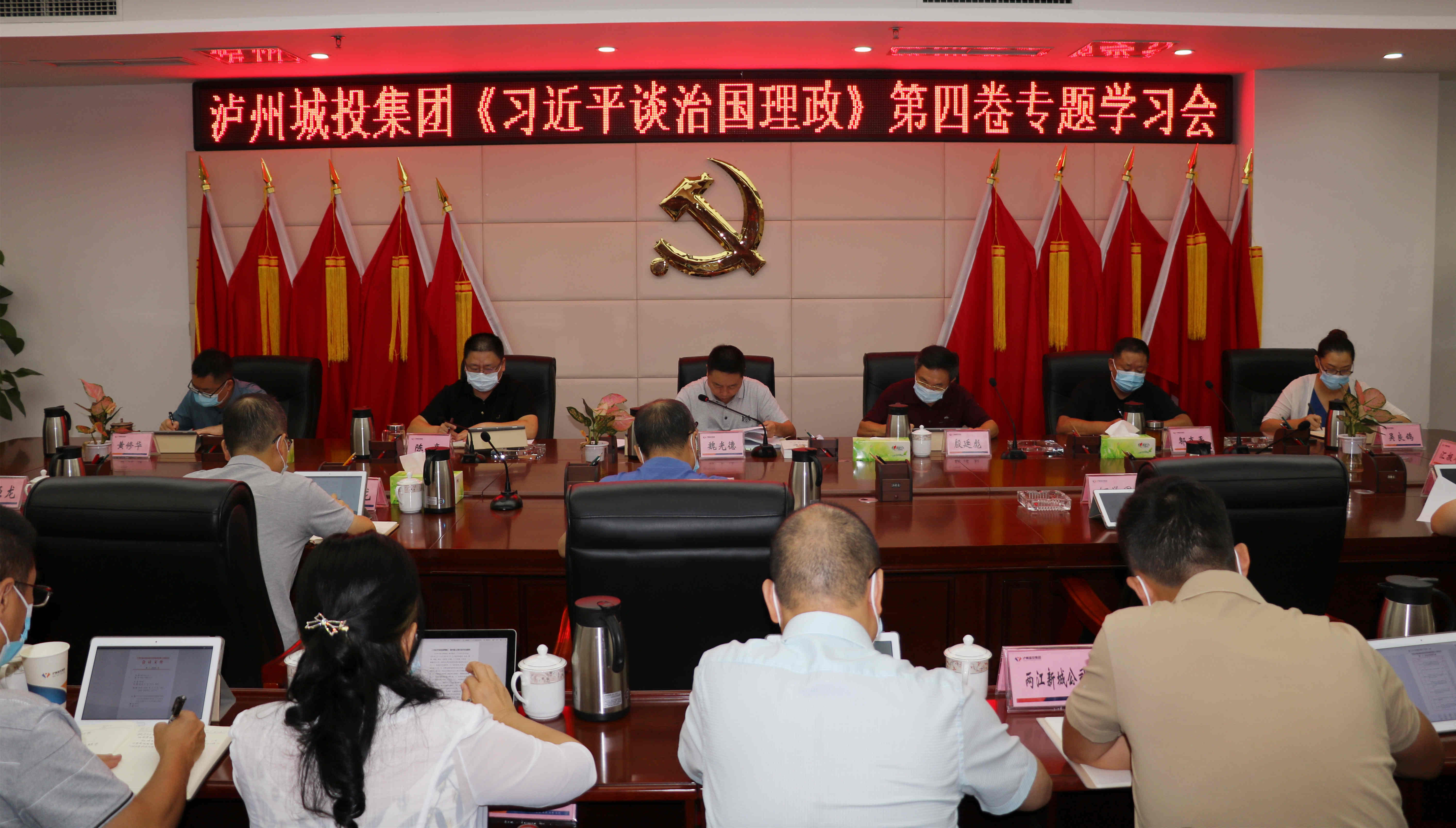 9月19日,瀘州城投集團(tuán)黨委理論學(xué)習(xí)中心組舉行專題學(xué)習(xí)(擴(kuò)大)會(huì),圍繞《習(xí)近平談治國理政》第四卷進(jìn)行集中學(xué)習(xí)研討。會(huì)議由集團(tuán)黨委書記、董事長魏光德主持,集團(tuán)領(lǐng)導(dǎo)班子成員,集團(tuán)各部門、各子公司負(fù)責(zé)人參會(huì)。