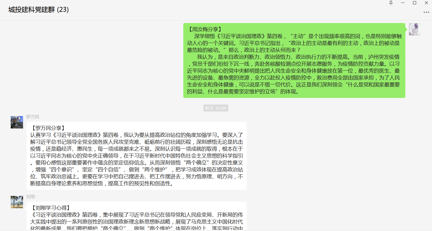 建材科技公司黨支部迅速把書籍納入學(xué)習(xí)計(jì)劃,制定學(xué)習(xí)方案,作為“三會(huì)一課”重點(diǎn)學(xué)習(xí)內(nèi)容,通過線上“感悟交流”和線下“個(gè)人自學(xué)”,持續(xù)抓好《習(xí)近平談治國理政》第四卷學(xué)習(xí)使用。