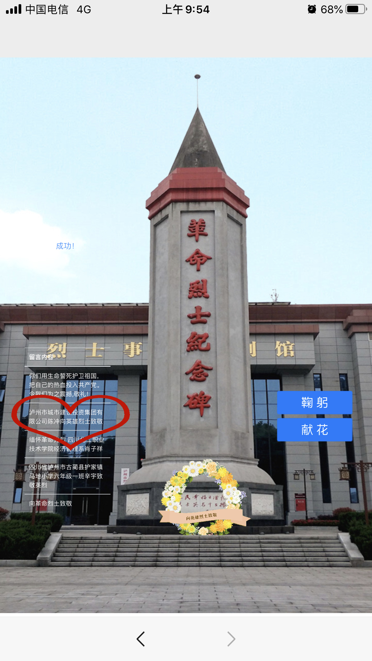 今年是中國人民抗日戰(zhàn)爭暨世界反法西斯戰(zhàn)爭勝利75周年,中國人民志愿軍抗美援朝入朝作戰(zhàn)70周年。為紀念革命先烈,4月3日,瀘州城投集團開展“致敬·2020清明祭英烈”網(wǎng)上祭掃活動?;顒禹憫?yīng)了習近平總書記關(guān)于防控新冠肺炎疫情和英烈褒揚的重要指示精神,按照省、市相關(guān)工作要求,以“致敬·2020清明祭英烈”為主題,以緬懷先烈功績、弘揚英烈精神為重點,結(jié)合當前疫情防控需要,開展網(wǎng)上祭掃,致敬英雄烈士。