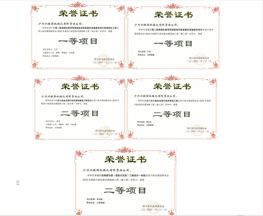 喜報!瀘州城投集團興綠園林公司多個項目榮獲2023年度四川省優(yōu)質(zhì)風景園林工程獎