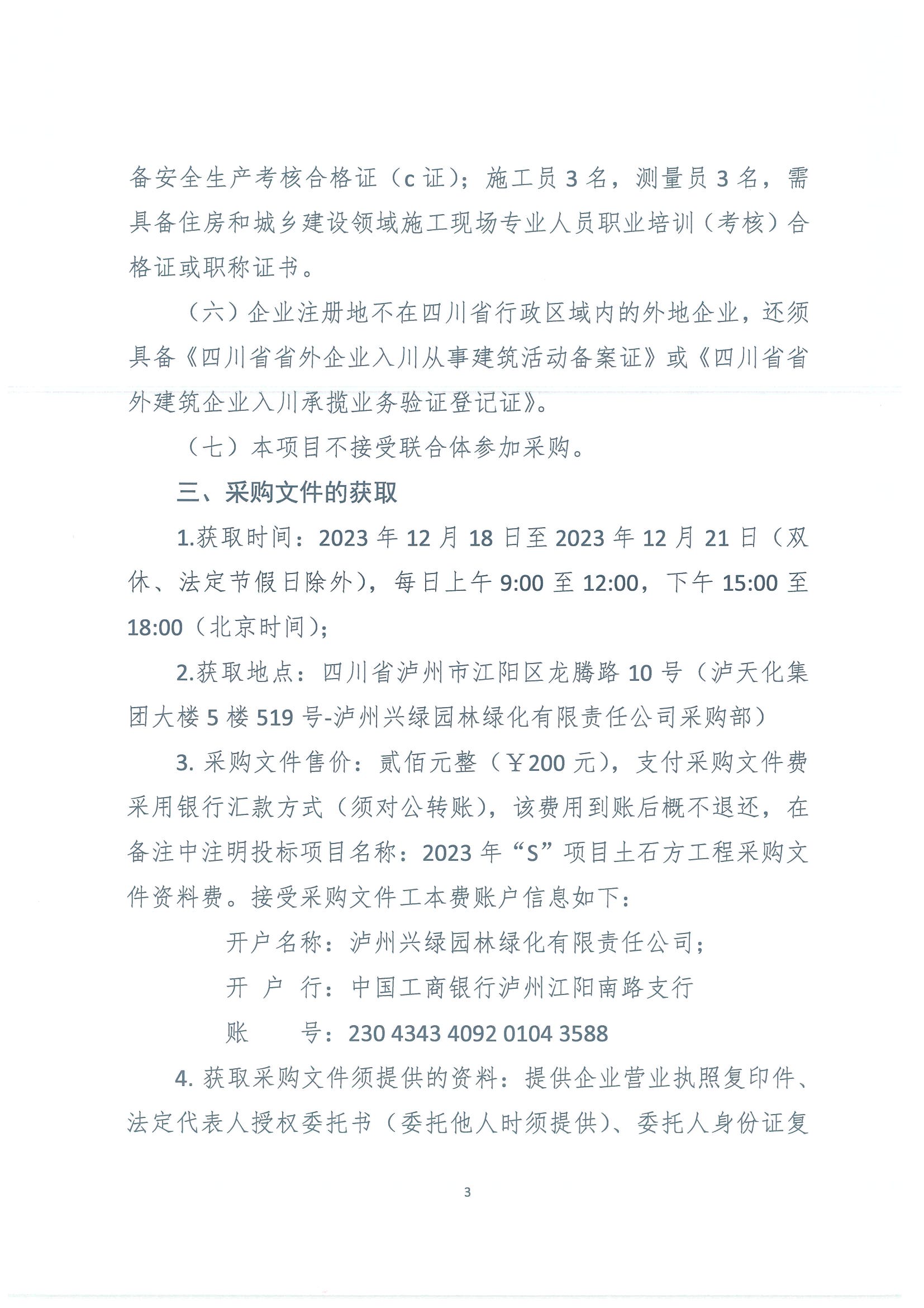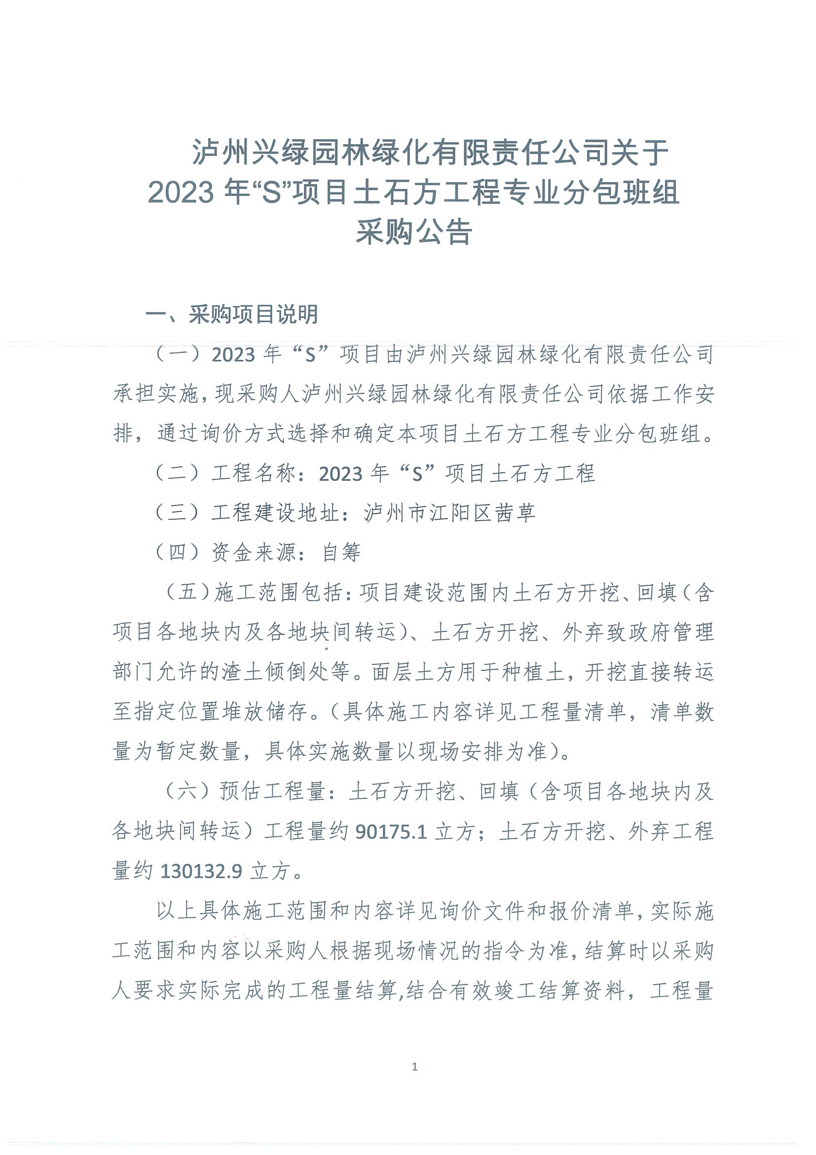 2023年“S”項目土石方工程專業(yè)分包班組采購公告