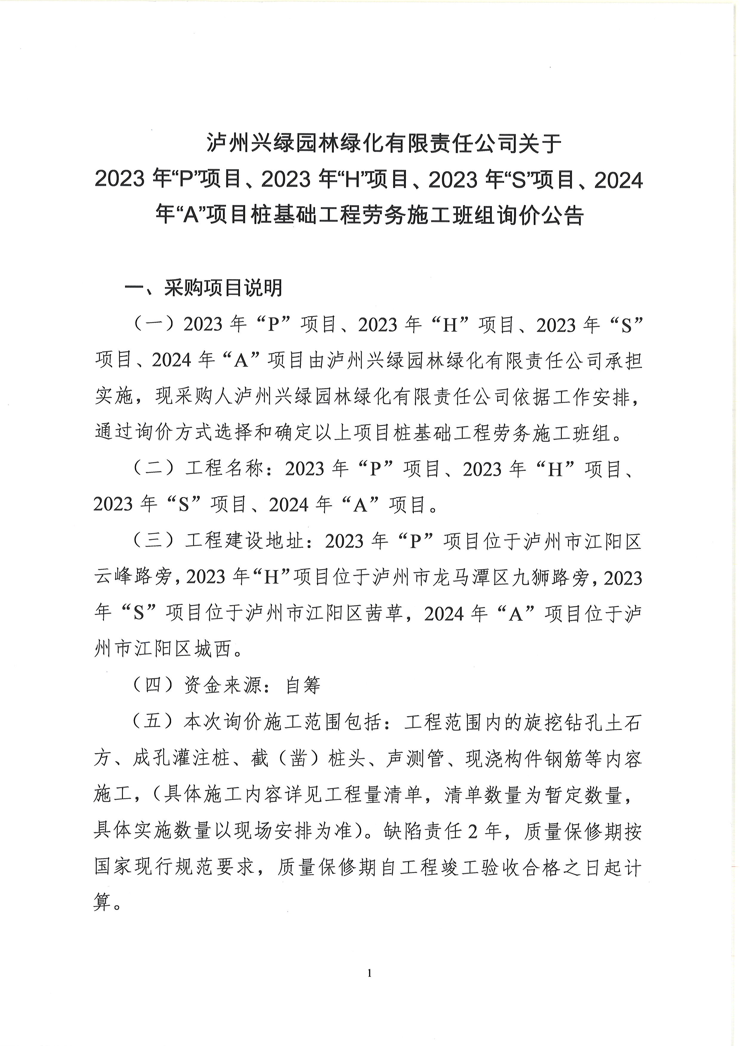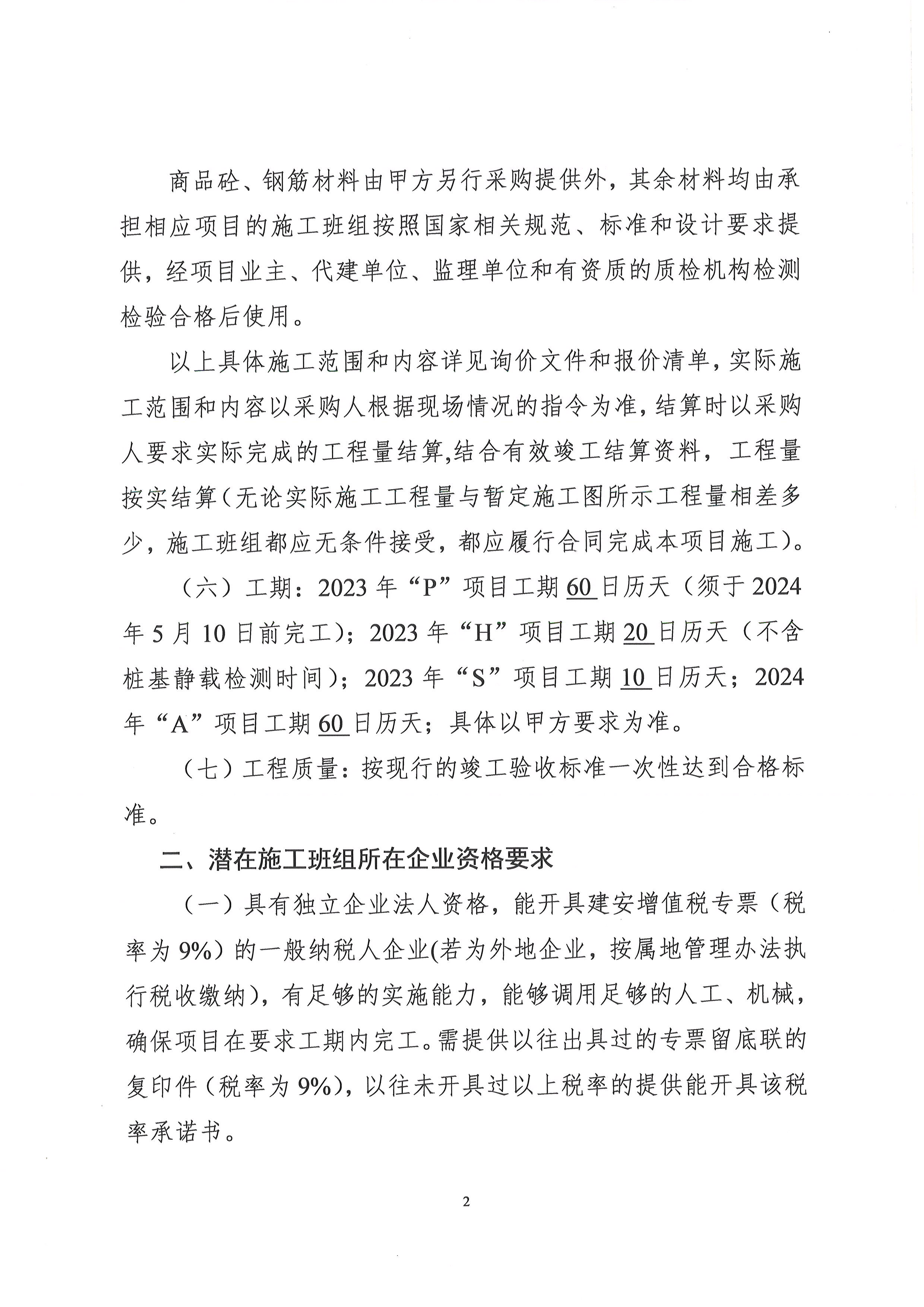 2023年“P”項(xiàng)目、2023年“H”項(xiàng)目、2023年“S”項(xiàng)目、2024年“A”項(xiàng)目樁基礎(chǔ)工程勞務(wù)施工班組詢價公告